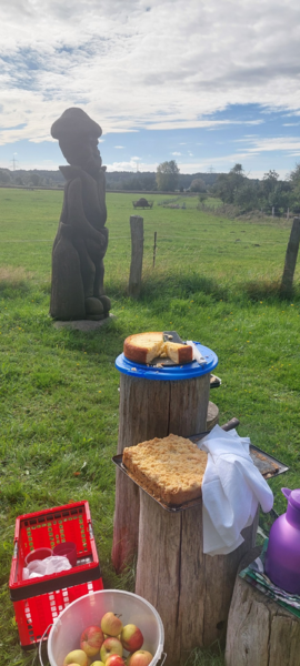 Der "säende Bauer" war etwas vergnatzt, weil er nicht am vorzüglichen Kuchenbuffet beeteiligt wurde, sein kleiner Helfer sah es gelassen.